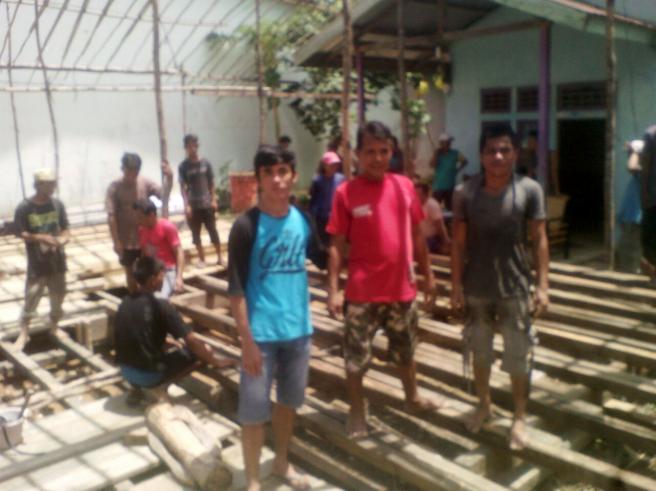 Kades Nanga Mau Joe Santo Bersama tokoh Masyarakat Persatuan Orang Melayu (POM) di Kecamatan Kayan Hilir bekerja gotong royong hajatan pernikahan Keluarga besar Pak Matjun Tupai,gotong royong ini di lakukan setiap ada hajatan pernikahan dan kegiata ke agama an atau pun kegiatan yang di adakan oleh pemerintah di kecamatan Kayan Hilir ,Kabupaten Sintang.