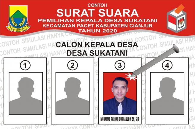 Dengan demikian kami mengajak masyarakat desa sukatani menyatukan gagasan dan menyuarakan semangat untuk bersama-sama membangun desa sukatani agar menjadi desa yang mandiri , maju , sejahtera , kaya akan sumberdaya lingkungan dan tentunya insyaalloh akan menjadi amanah bagi Kang Parhan apabila diberikan takdir dan amanat untuk menjadi seorang kepala desa sukatani 2020-2026.