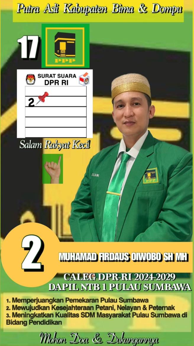 begitu juga apa yang di lakukan Muhamad Firdaus oiwobo SH MH terlihat sangat masive, dengan team yang telah di rawat hampir setahun lamanya Firdaus membentuk 4 kelompok team sukses di antaranya bernama laskar Firdaus yang sangat di kenal di pulau Sumbawa.