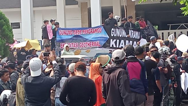 Aliansi Masyarakat Gunung Pangrango mengadakan aksi Demo ke Gedung DPRD dan Audiensi kepada anggota DPRD Kabupaten Cianjur terkait dengan penolakan masyarakat terhadap Proyek panas bumi Geothermal yang disinyalir akan memberikan banyak dampak kepada negatif kepada lingkungan masyarakat, Jumat 19/05/2023.