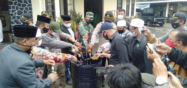 POLSEK PACET MUSPIKA DAN MUI MUSNAHKAN MIRAS
